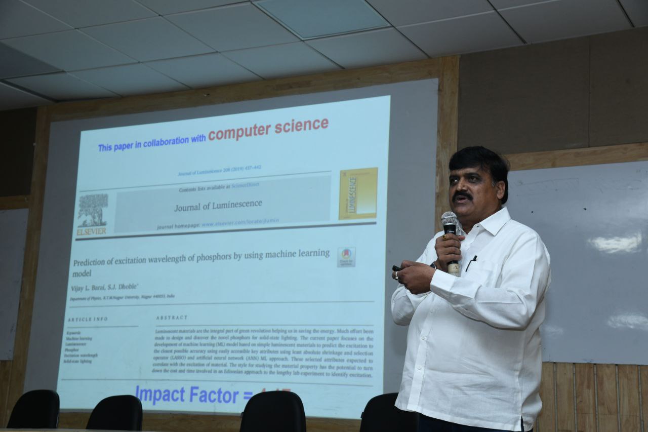 In this workshop Dr. Sanjay Dhoble, Professor of Physics Department of Nagpur University, International Researcher Prof. Dr. Gajanan Bodkhe and on behalf of the University Vice Chancellor Dr. Vilas Sapkal, Registrar Dr. Ashish Gadekar, Principal Dr. Prati Deshmukh, Director Dr. Annasaheb Khemner, Director Dr. Parminder Kaur Dhingra, Prof. Dr. K. М. Jadhav, Head of Department of Physics Dr. K. R. Zakde, professors, students and all concerned were present.